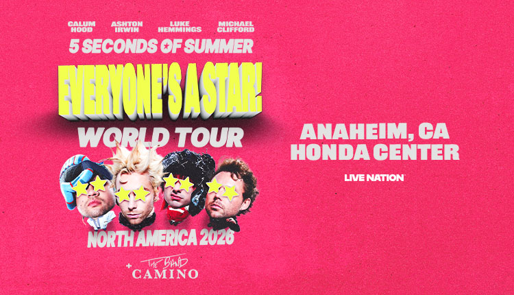 History-making, multiplatinum Australian alt-rock and future punk/pop band 5 Seconds of Summer will be joined by The Band Camino for the EVERYONE’S A STAR! World Tour, coming to Anaheim this June.
